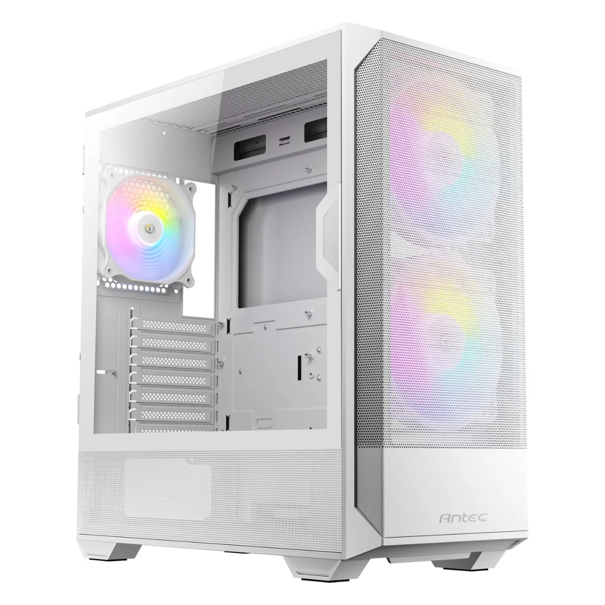L’Antec NX416L WHITE è un case gaming mid-tower dal design elegante in finitura bianca, che unisce estetica raffinata e prestazioni di raffreddamento elevate. Con 3 ventole ARGB preinstallate, pannello laterale in vetro temperato con apertura a sportello e supporto fino a 11 ventole da 120 mm, è la scelta ideale per build performanti e dal look premium.