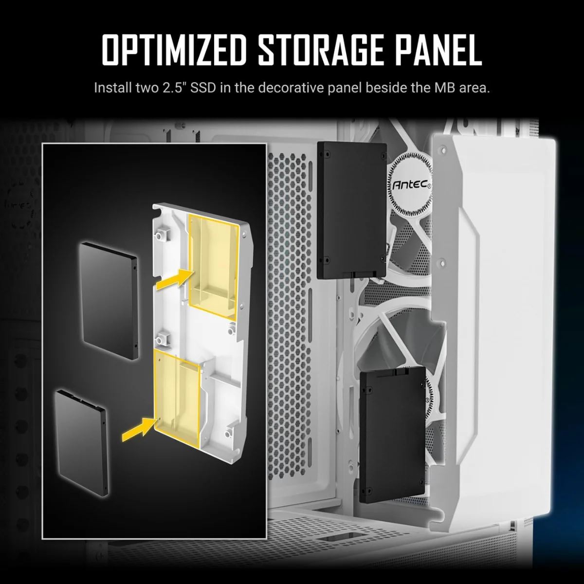 L’Antec NX416L WHITE offre tutte le funzionalità del modello standard, ma con una splendida finitura bianca che lo rende perfetto per setup luminosi e moderni. La mesh frontale ad alta ventilazione e le ventole preinstallate garantiscono un flusso d’aria eccezionale per mantenere i componenti sempre freschi, anche durante sessioni di gaming estreme.