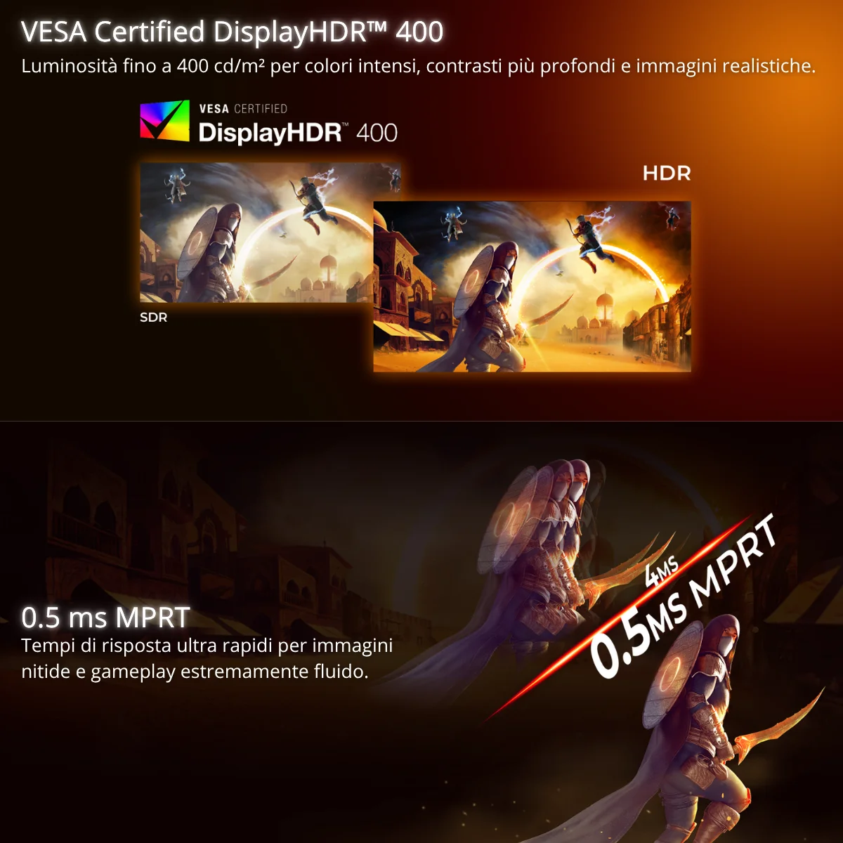 | Tempo di risposta | 1ms GtG / 0.5ms MPRT (UHD) / 0.3ms MPRT (FHD) |
