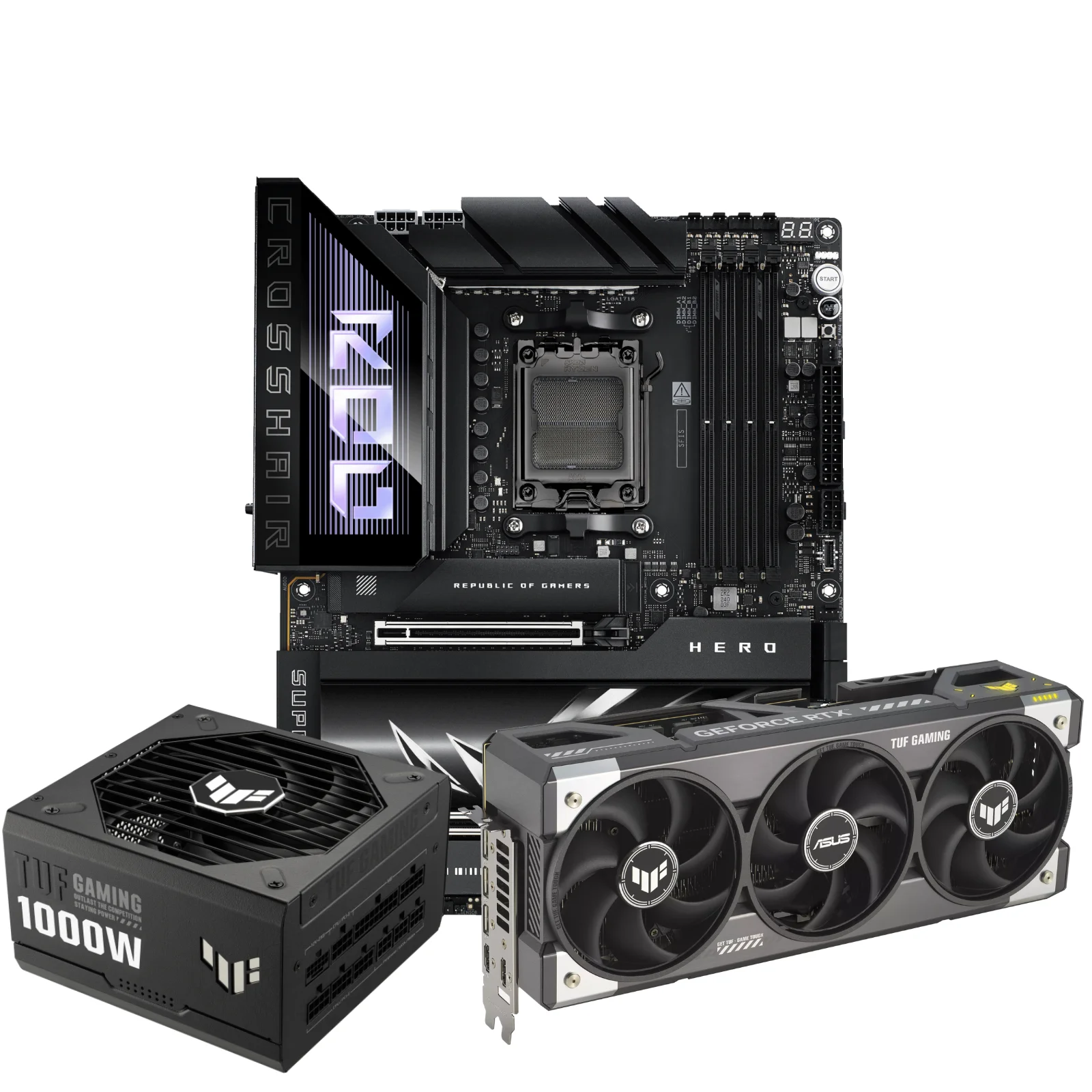 ASUS Bundle – TUF Gaming GeForce RTX 5080 16GB GDDR7 OC Edition + TUF Gaming 1000W Gold + ROG CROSSHAIR X870E HERO + TUF Gaming GT502 Horizon Black + ROG Ryuo IV 360 ARGB