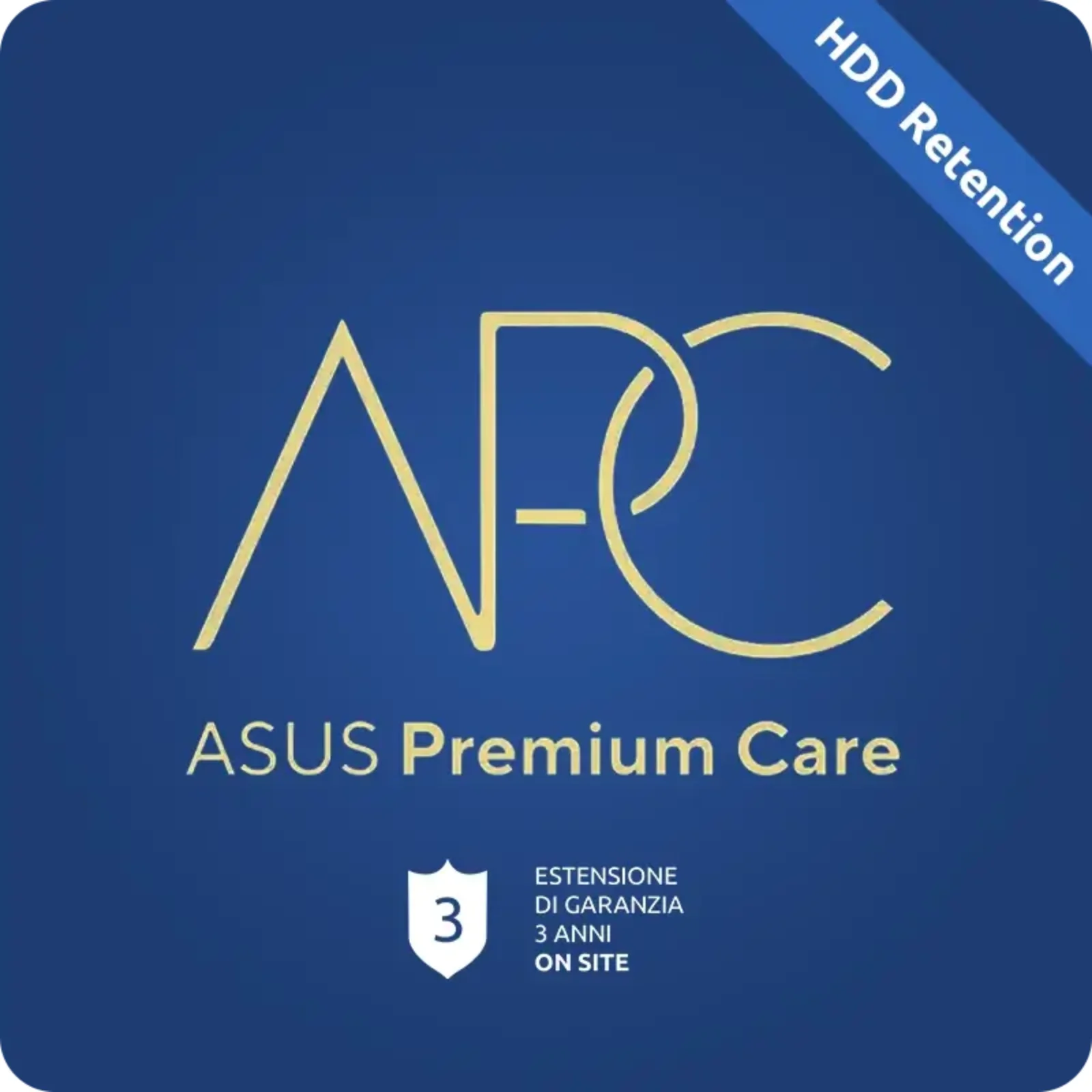 Questo pacchetto include 3 anni di estensione della garanzia con assistenza on-site, permettendo l’intervento diretto di un tecnico ASUS presso la tua sede, e la funzione HDD Retention, che consente di trattenere il disco rigido in caso di sostituzione, garantendo la protezione dei dati sensibili.