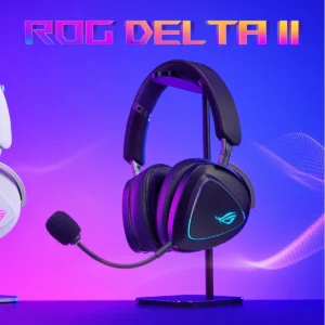 Le ASUS ROG Delta II-KJP sono cuffie gaming wireless premium nate dalla collaborazione tra ROG e KOJIMA PRODUCTIONS, ispirate al simbolo Ludens. Dotate di driver da 50 mm placcati in titanio, tecnologia DualFlow Audio, microfono boom super-wideband da 10 mm e connettività 2.4GHz / Bluetooth / 3.5mm, offrono audio potente, design esclusivo e compatibilità multipiattaforma. Finitura White, illuminazione RGB Aura Sync e tema dedicato Armoury Crate completano un’esperienza unica.