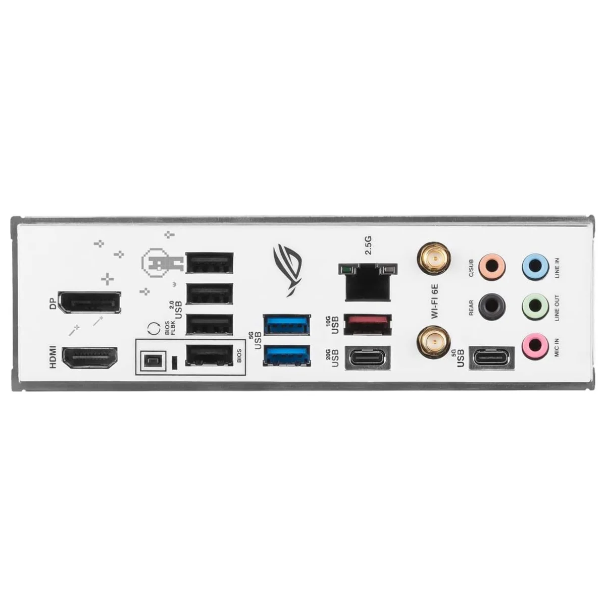 Con slot PCIe 5.0, USB 3.2 Gen 2×2 e Wi-Fi 6E, assicura un’esperienza di gioco e produttività fluida. Il design monocromatico con dettagli bianchi e argento si abbina perfettamente a case come l’ASUS AP201, mentre le insegne retrò mantengono il DNA ROG.