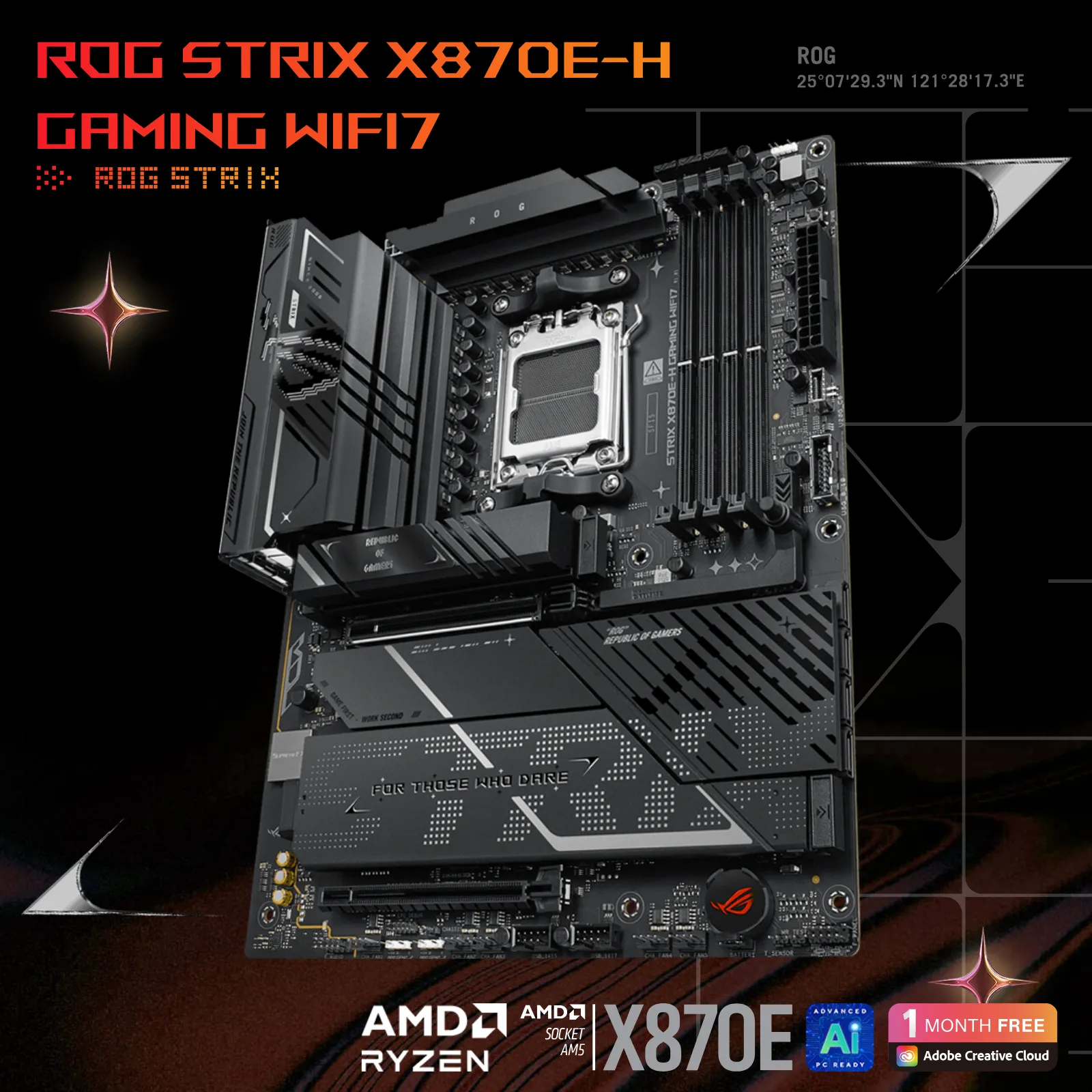 La ASUS ROG STRIX X870E-H GAMING WIFI7 è una scheda madre ATX pensata per sfruttare al massimo i processori AMD Ryzen™ serie 9000, 8000 e 7000. Grazie al supporto PCIe 5.0, alla memoria DDR5, al WiFi 7, alle porte USB4 Type-C e alle tecnologie ASUS AI per overclock, raffreddamento e rete, rappresenta una piattaforma avanzata per gaming, creazione di contenuti e build di nuova generazione.