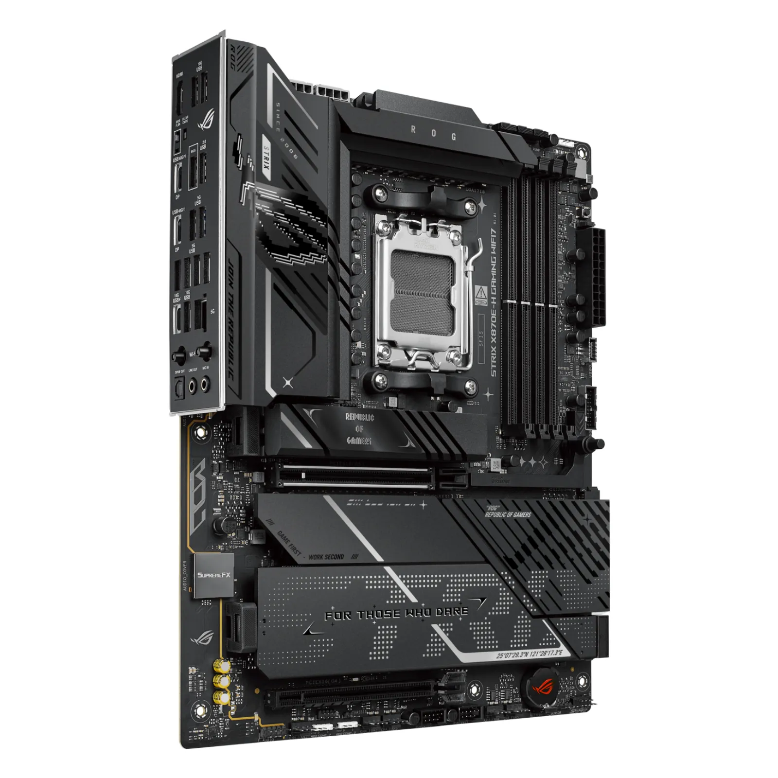 La ASUS ROG STRIX X870E-H GAMING WIFI7 è progettata per offrire una base solida, veloce e affidabile per sistemi gaming e workstation moderne. Compatibile con i processori desktop AMD Ryzen™ serie 9000, 8000 e 7000, sfrutta il socket AM5 e il chipset AMD X870E per garantire accesso alle tecnologie più recenti, elevate prestazioni e ampia flessibilità di configurazione.