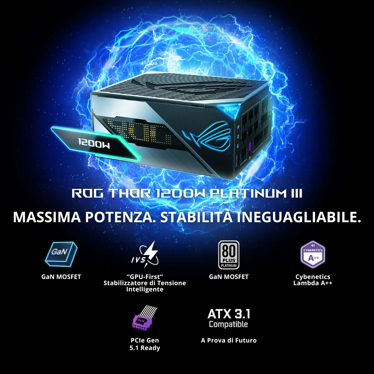 ASUS ROG Thor 1200W Platinum III – Alimentatore ATX 3.1 1200W 80 Plus Platinum, OLED Magnetico, GaN MOSFET, GPU-First, PCIe 5.1