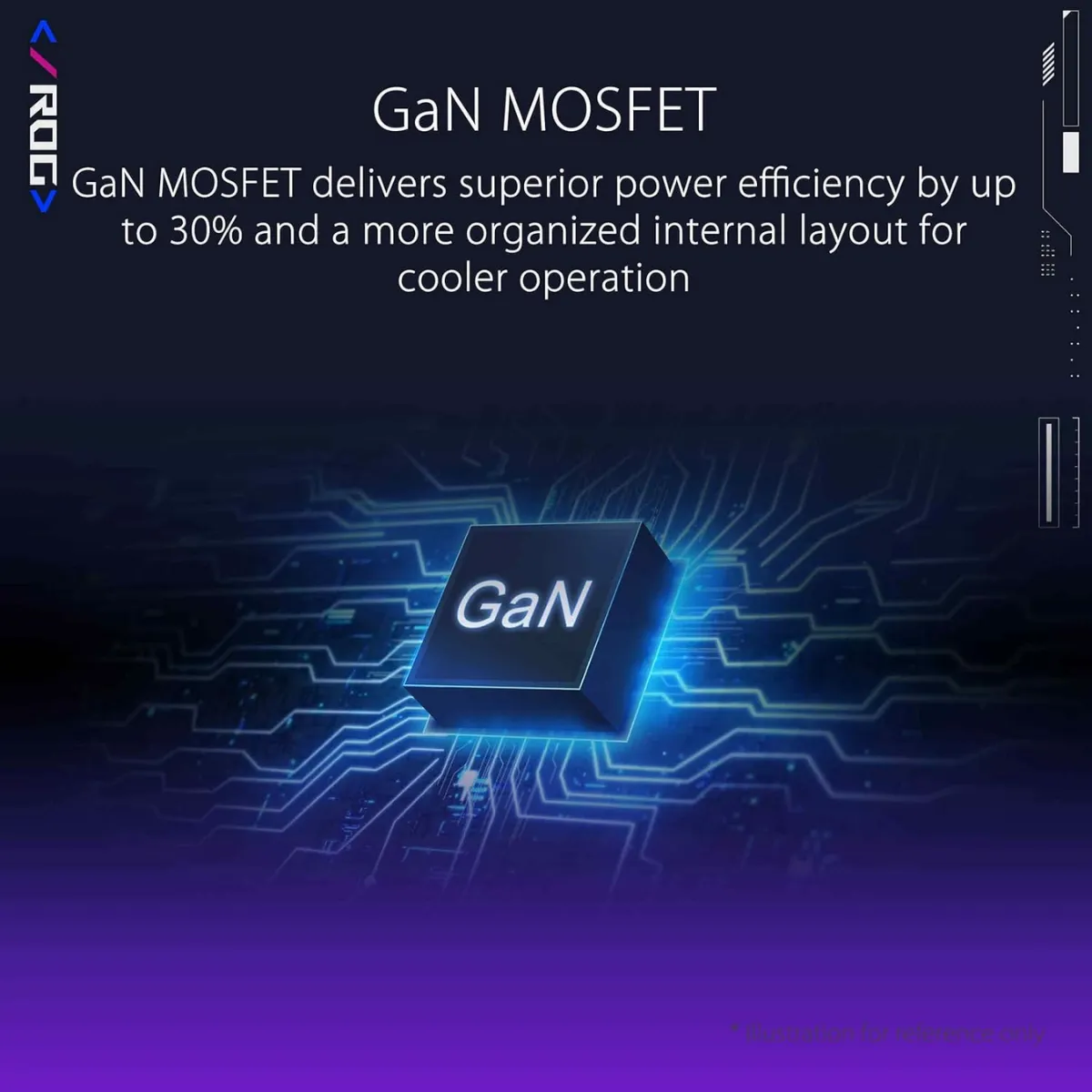 Uno dei punti di forza di questo alimentatore è l’adozione di un MOSFET GaN, progettato per migliorare efficienza energetica e dissipazione termica.