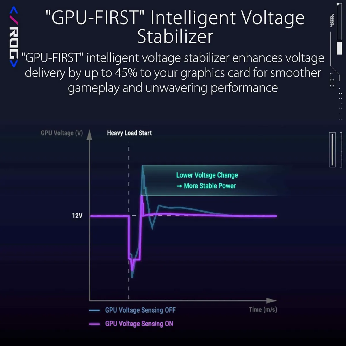 ASUS integra anche il sistema “GPU-First” Intelligent Voltage Stabilizer, una tecnologia progettata per dare priorità alla stabilità della scheda grafica, particolarmente utile nelle configurazioni gaming e nei carichi intensi.