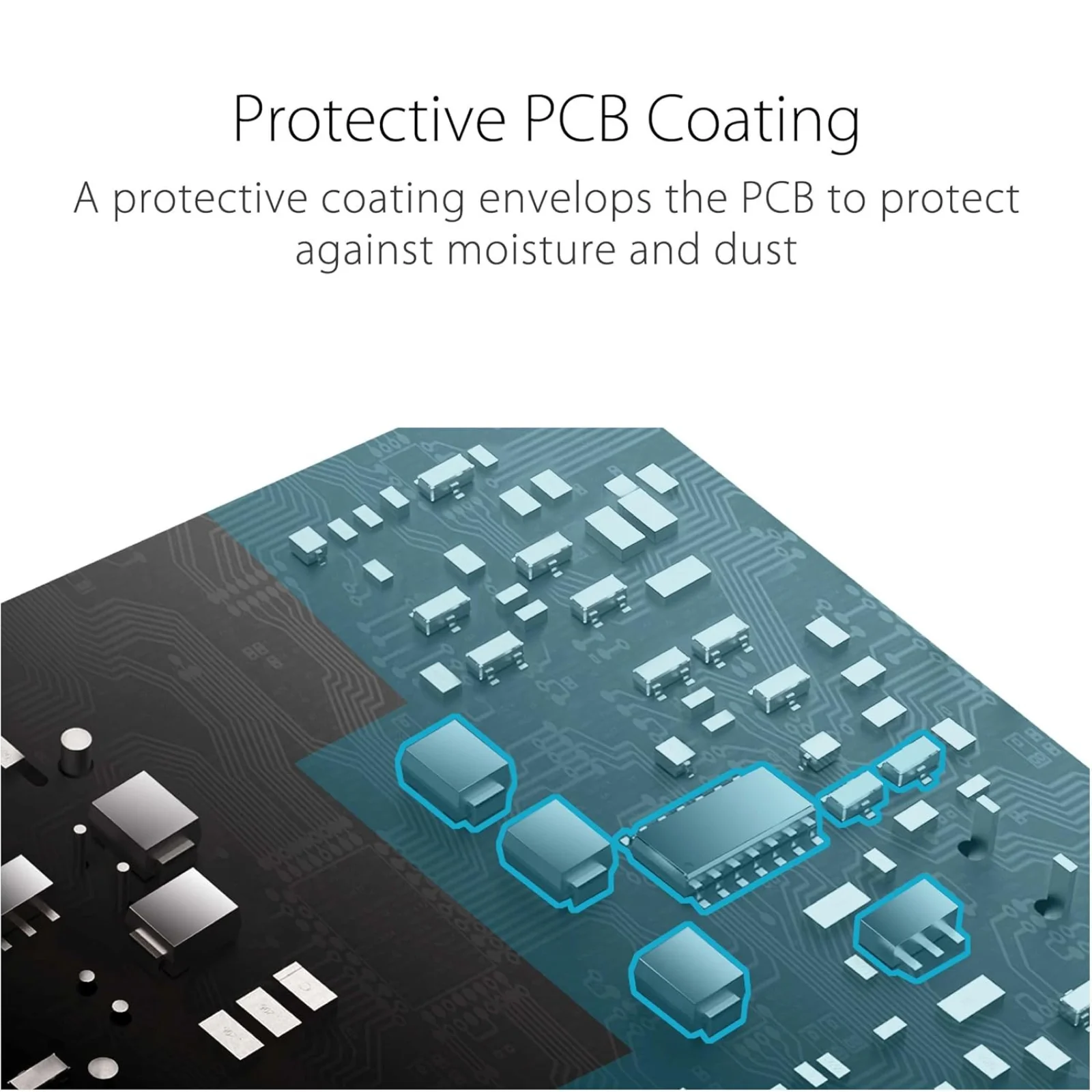 L’alimentatore TUF Gaming 1000W Gold utilizza condensatori e induttanze testati secondo standard militari, progettati per resistere a condizioni di utilizzo estreme.