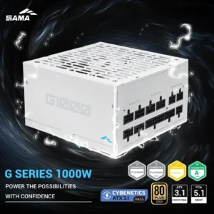 SAMA G1000 White – Alimentatore ATX 3.1 1000W 80 Plus Gold Full Modular con PCIe 5.1 12V-2×6 Bianco