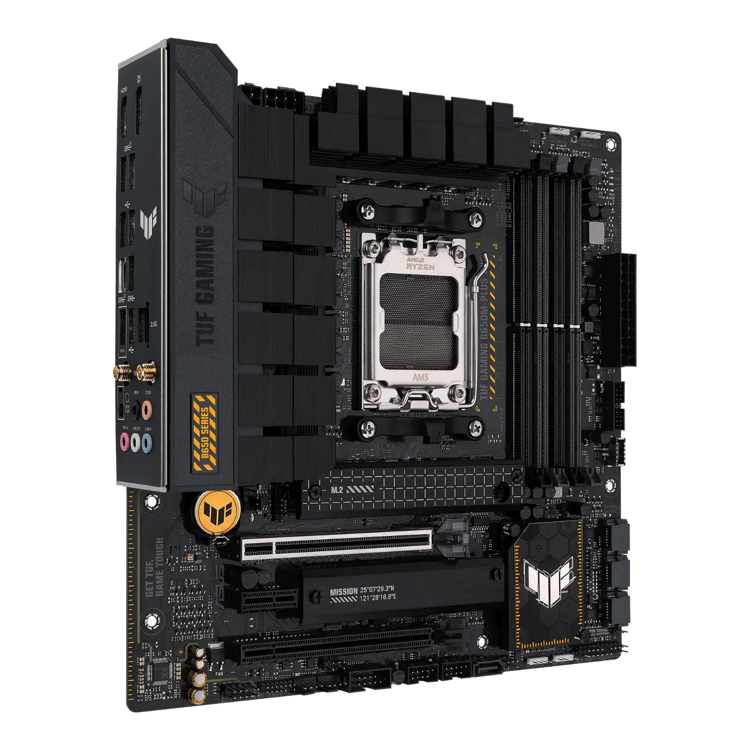 La ASUS TUF GAMING B650M-PLUS WIFI unisce la potenza delle ultime CPU AMD Ryzen™ serie 7000 alla leggendaria resistenza della linea TUF.