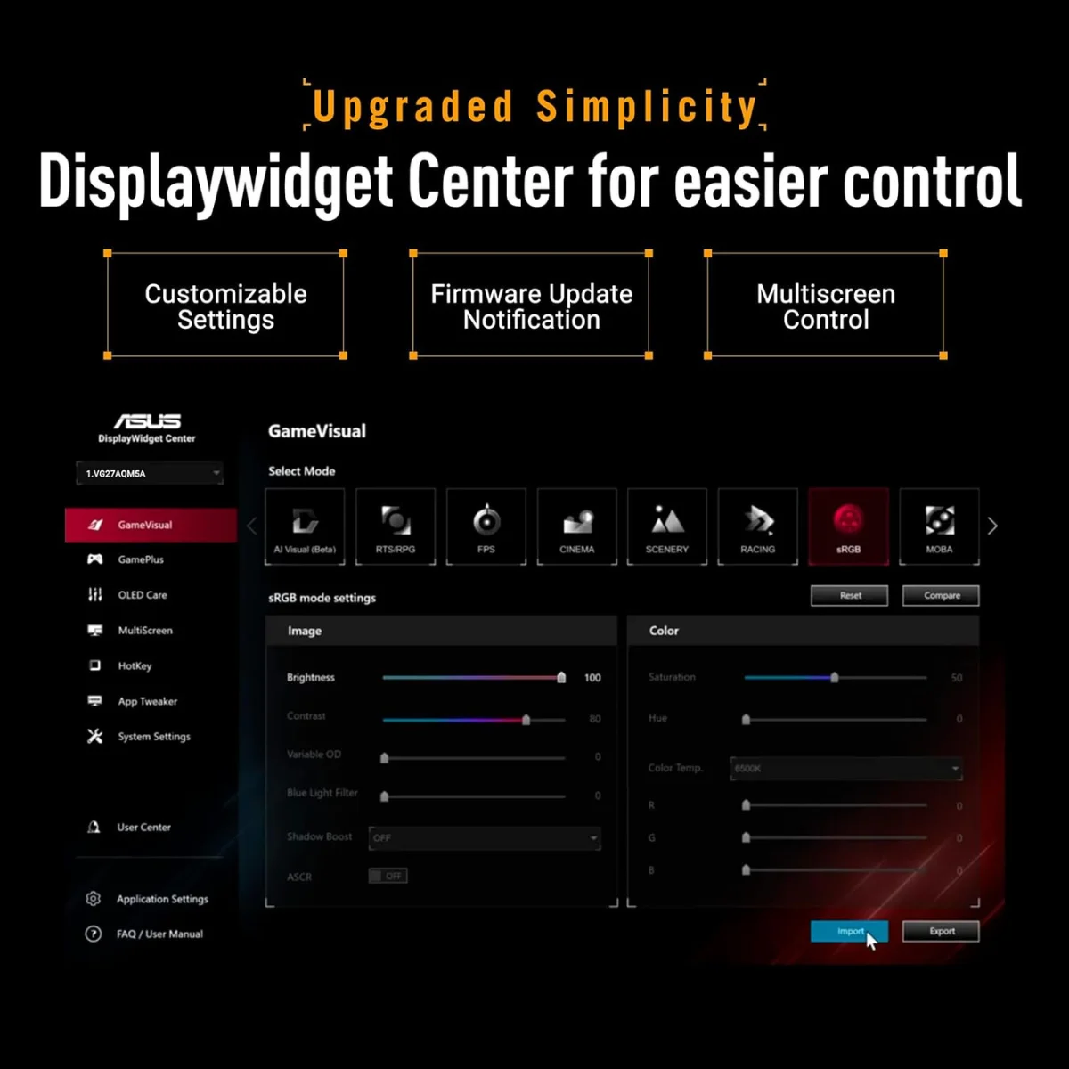 | Software | DisplayWidget Center, GameVisual, GamePlus |