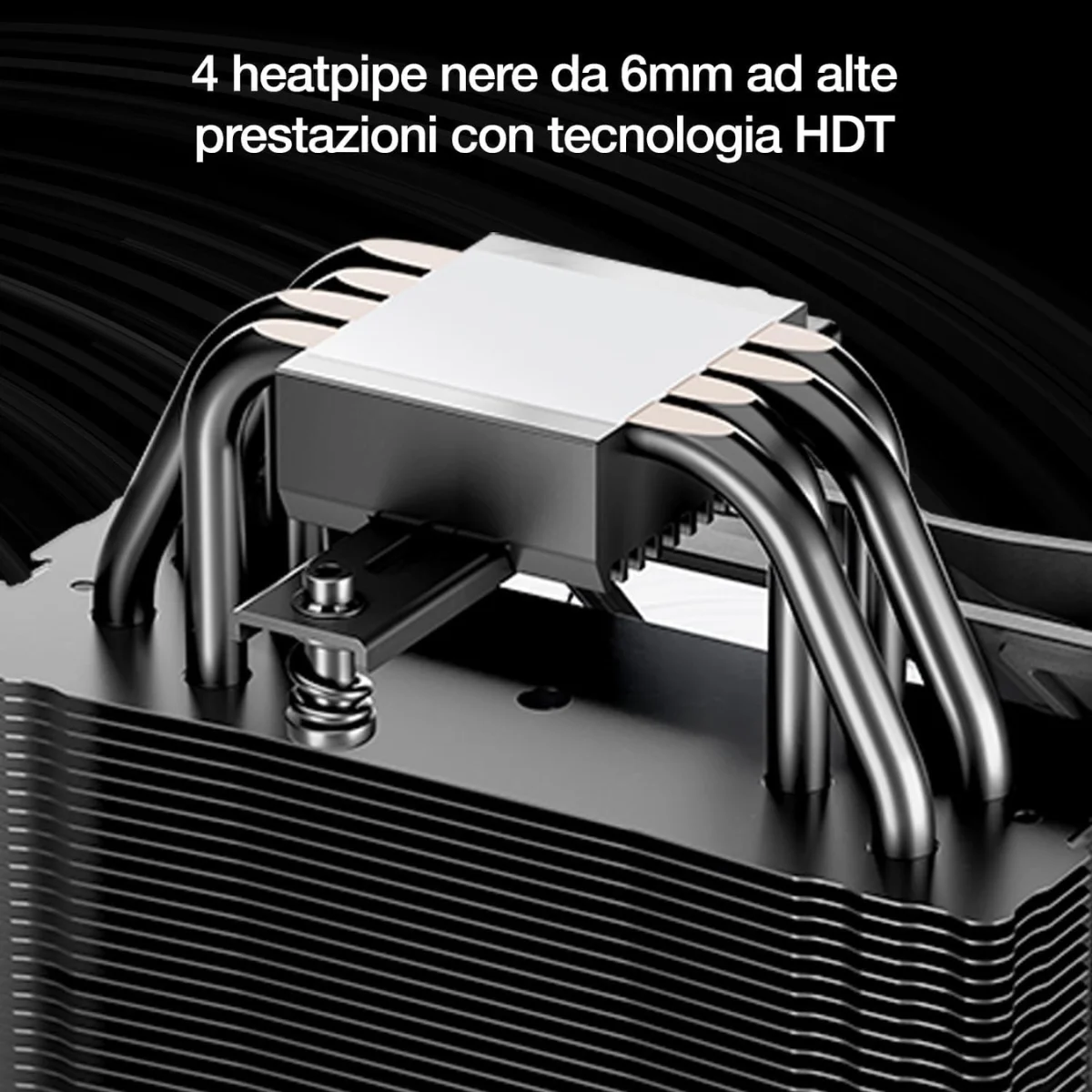 4 heatpipe da 6 mm in finitura nera con tecnologia Heatpipe Direct Touch
