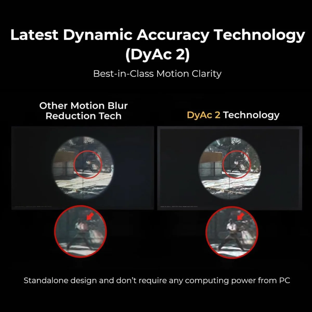 Grazie alla tecnologia proprietaria DyAc 2, le immagini restano estremamente nitide anche nelle azioni più frenetiche, riducendo al minimo l’effetto motion blur e migliorando la visibilità dei dettagli. Il nuovo design Dual Backlight non solo migliora ulteriormente la riduzione della sfocatura, ma garantisce una luce più morbida e confortevole per gli occhi.