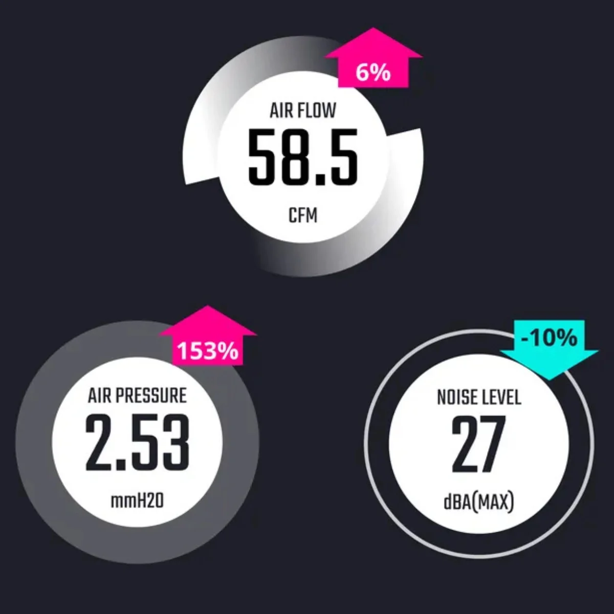 P-Q Curve ottimizzata per più airflow e pressione con meno rumore