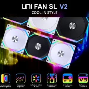 Lian Li UNI FAN TL120 Wireless White – Kit 3 Ventole 120mm PWM Wireless ad Alte Prestazioni, Bianche
