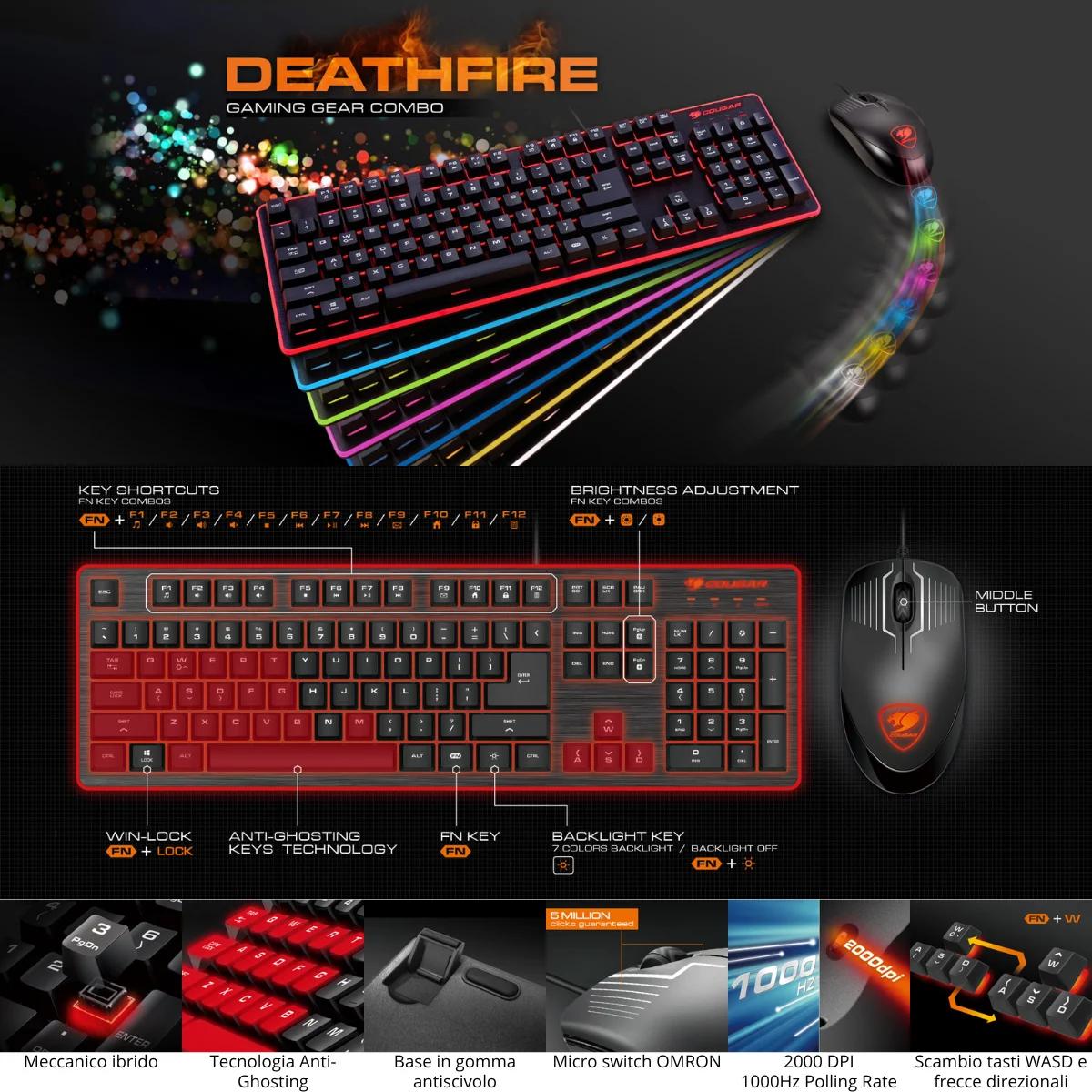 COUGAR Deathfire – Combo Gaming Tastiera Layout Italiano + Mouse con Retroilluminazione 7 Colori
