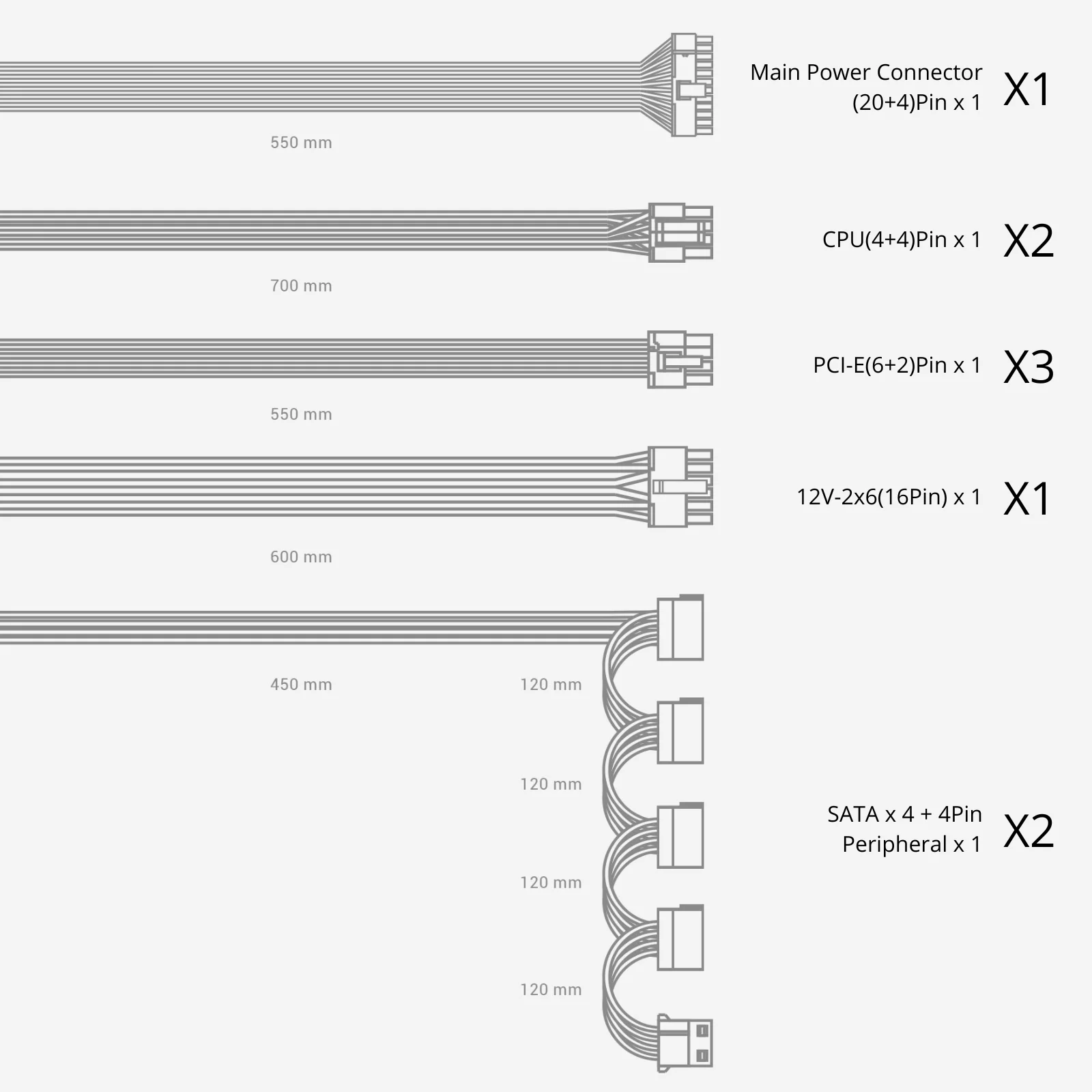 | PCI-E (6+2 pin) | 3 | 550 mm | 3 |