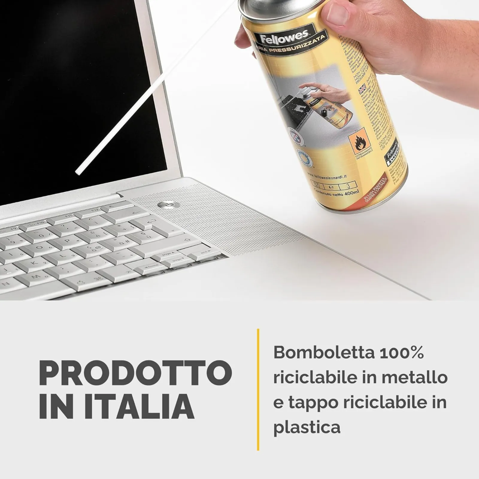 Fellowes 99676I – Aria Compressa 400ml per Pulizia PC, Tastiere ed Elettronica Senza CFC