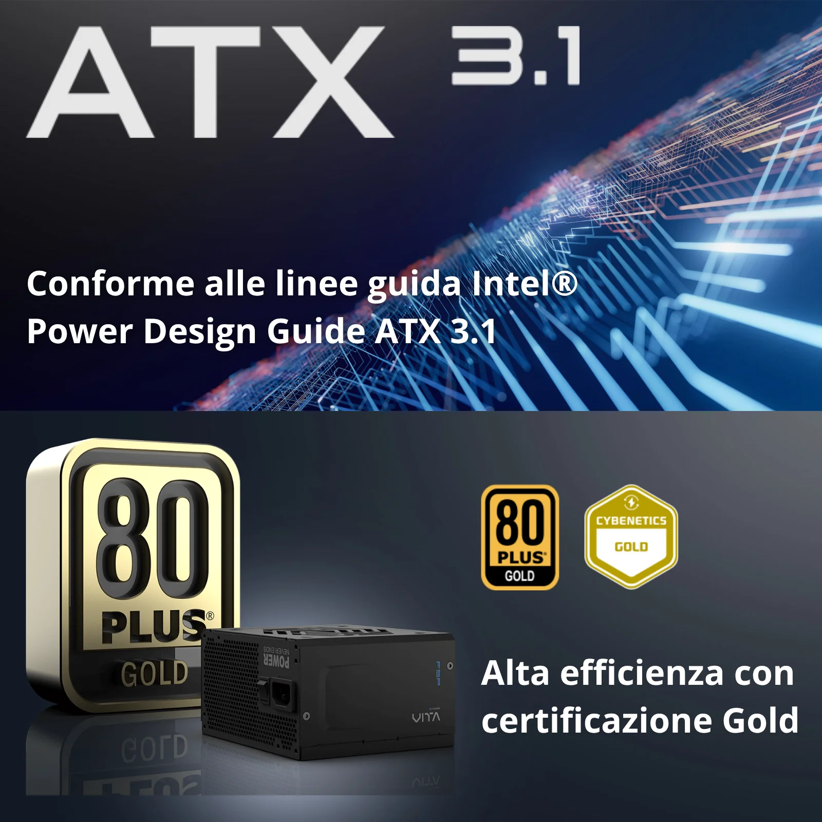 FSP VITA GM 1000W – Alimentatore 1000W, 80 PLUS Gold, Cybenetics A-, ATX 3.1, PCIe 5.1, Modulare