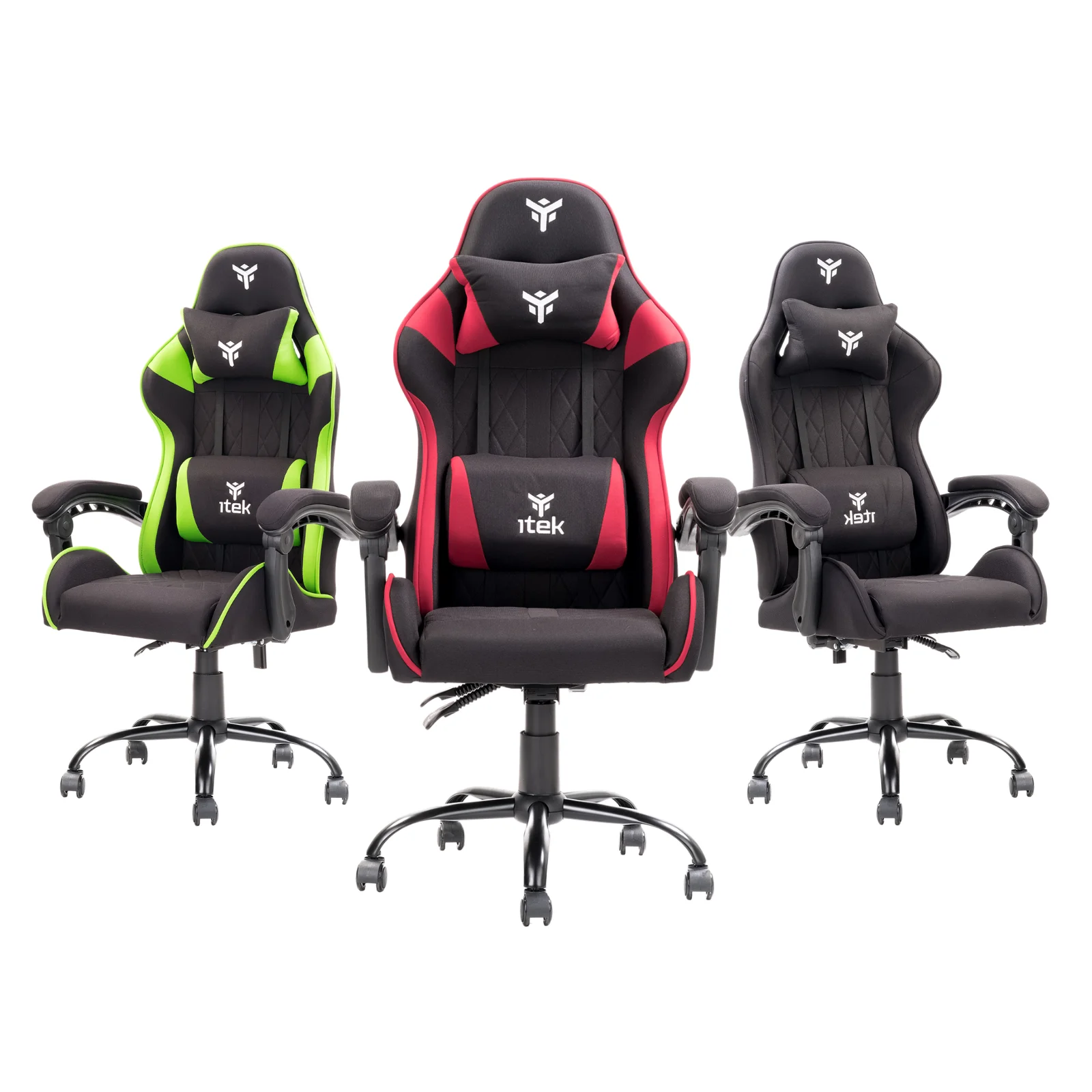 Itek Rhombus FF10 – Sedia Gaming Ergonomica in Tessuto con Schienale Reclinabile e Doppio Cuscino (Red / Black / Green)