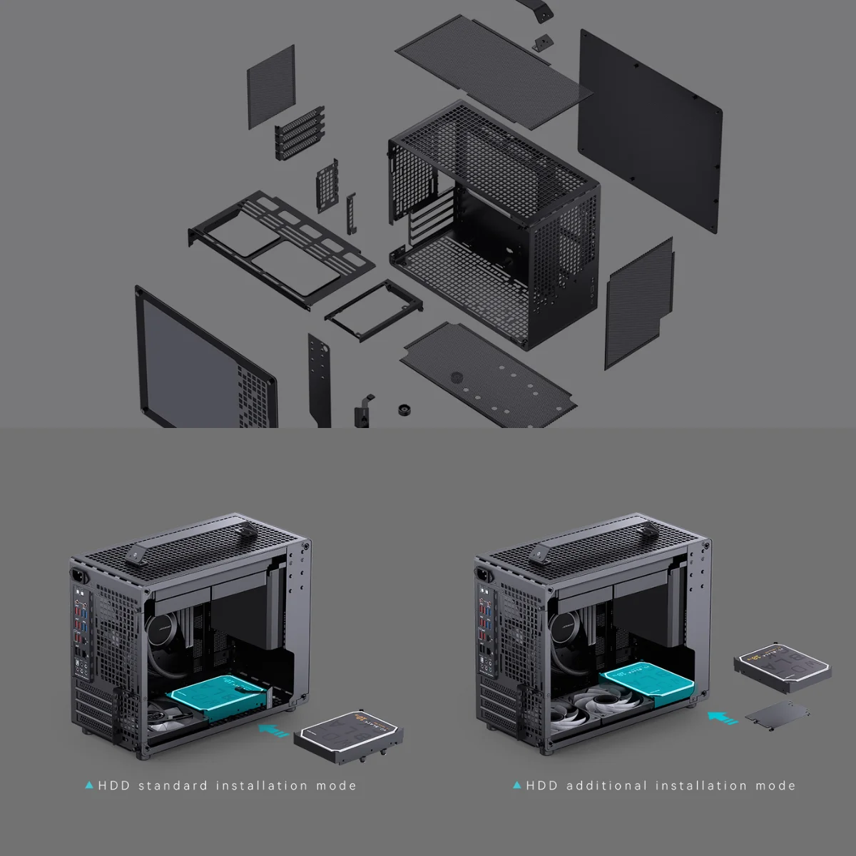 La progettazione ottimizzata offre un’esperienza di montaggio flessibile, con configurazioni hardware variabili e spazio sufficiente per alimentatori ATX fino a 150mm in modalità aria, o 140mm in configurazioni con raffreddamento a liquido.