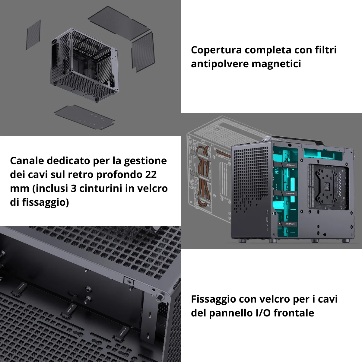 Il Jonsbo Jonsplus Z20 Tempered Glass Black è pensato per chi cerca un case compatto e versatile senza rinunciare a prestazioni e compatibilità hardware. Con un volume di soli 20 litri, integra un design intelligente che consente di installare componenti di fascia alta tipici dei case più grandi.