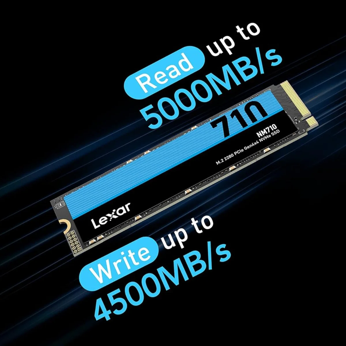 Il Lexar NM710 2TB è un SSD M.2 2280 NVMe PCIe Gen4x4 progettato per offrire prestazioni elevate, affidabilità e consumi ottimizzati. Con velocità fino a 4.850 MB/s in lettura e 4.500 MB/s in scrittura, è ideale per PC e laptop, gaming, lavoro quotidiano e multitasking avanzato.