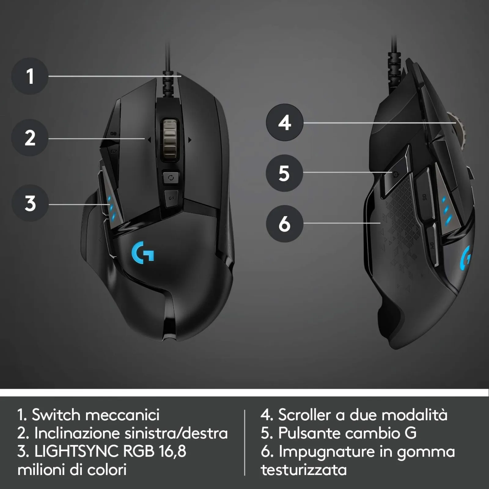 Logitech G502 HERO – Mouse Gaming 25.600 DPI, 11 Pulsanti Programmabili, Peso Regolabile, LIGHTSYNC RGB