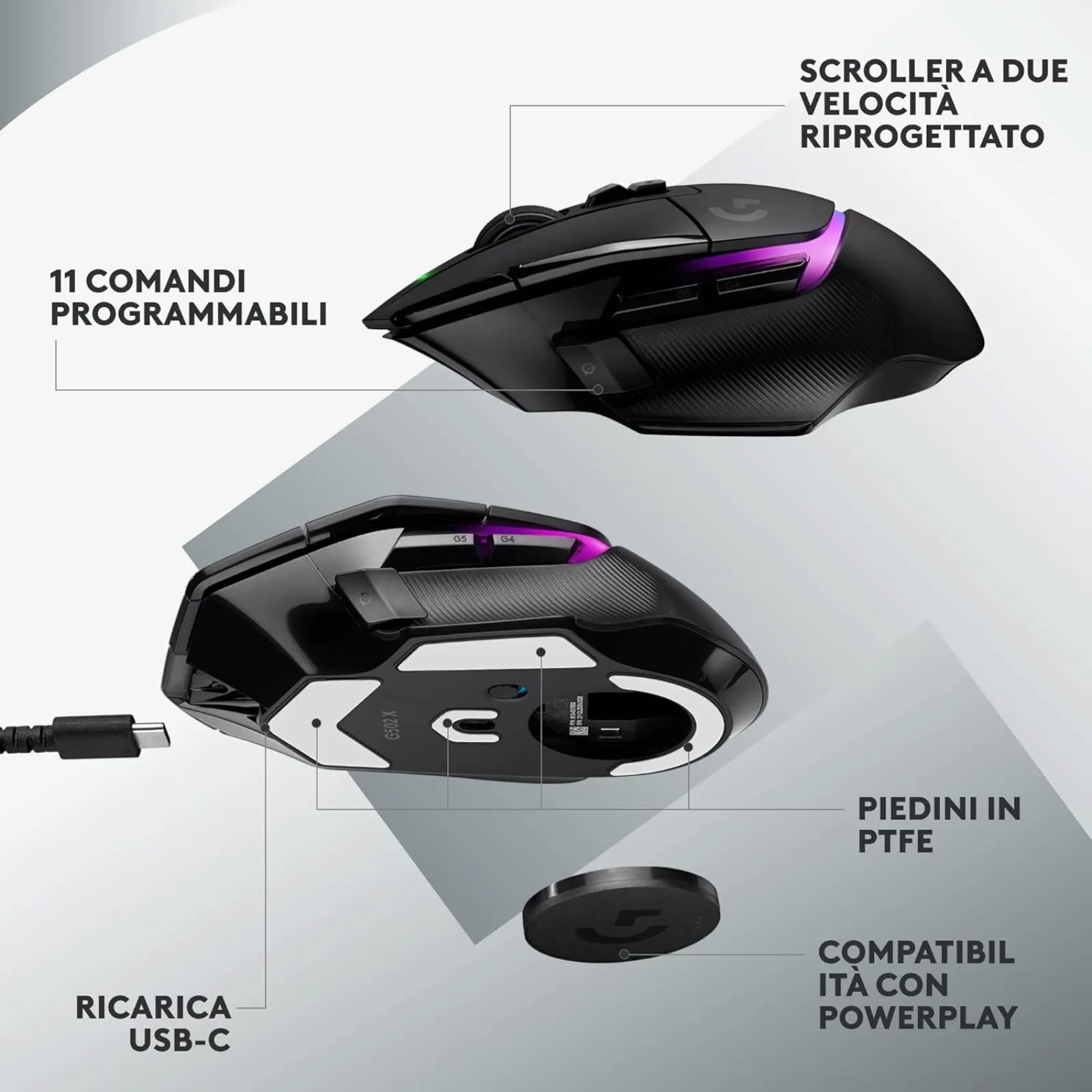 Il Logitech G502 X PLUS rappresenta la nuova generazione della leggendaria linea G502, riprogettato con le tecnologie più avanzate per offrire prestazioni professionali, precisione assoluta e massima personalizzazione.