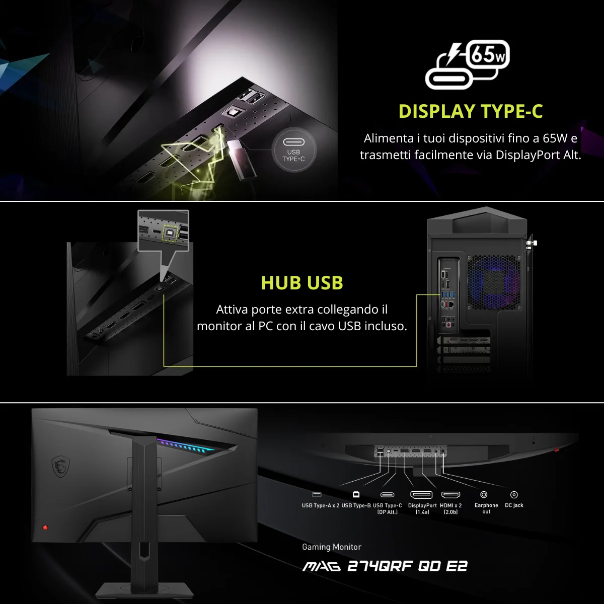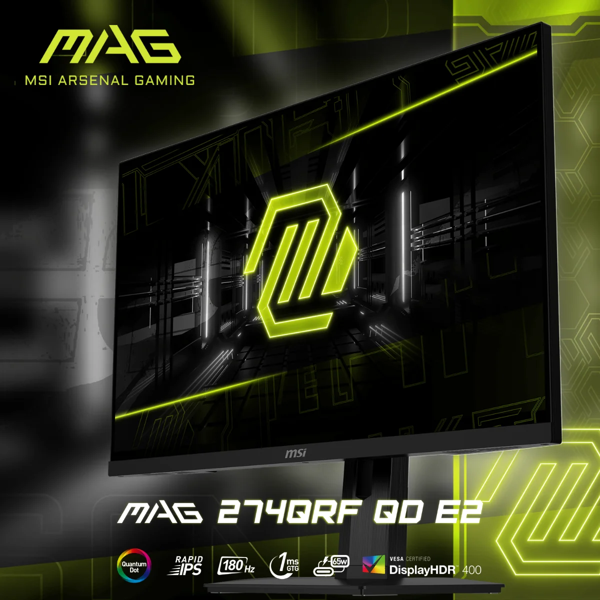 MSI MAG 274QRF QD E2 – Monitor Gaming 27″, WQHD, Rapid IPS, 180Hz, 1ms, Quantum Dot, DisplayHDR 400, 98% DCI-P3, Adaptive Sync