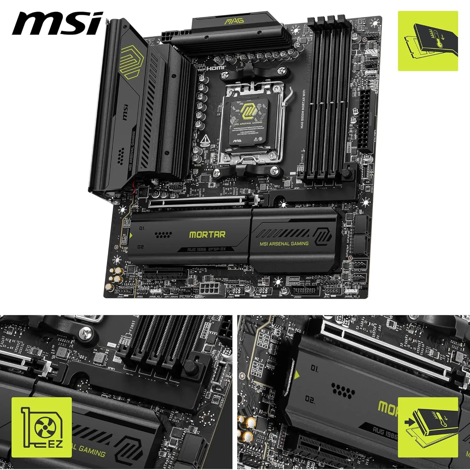 MSI MAG B850M MORTAR WIFI – Scheda Madre Micro-ATX, Socket AM5, DDR5, PCIe 5.0, USB 3.2, Wi-Fi 7, LAN 5G, Bluetooth 5.4 [911-7E61-001]