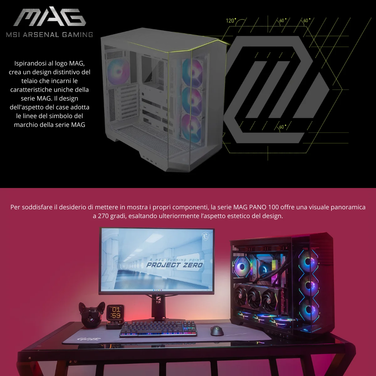 Il MSI MAG PANO 100R PZ ridefinisce il concetto di case gaming con un design panoramico a 270° in vetro temperato, perfetto per mostrare i tuoi componenti di ultima generazione e l’illuminazione ARGB.