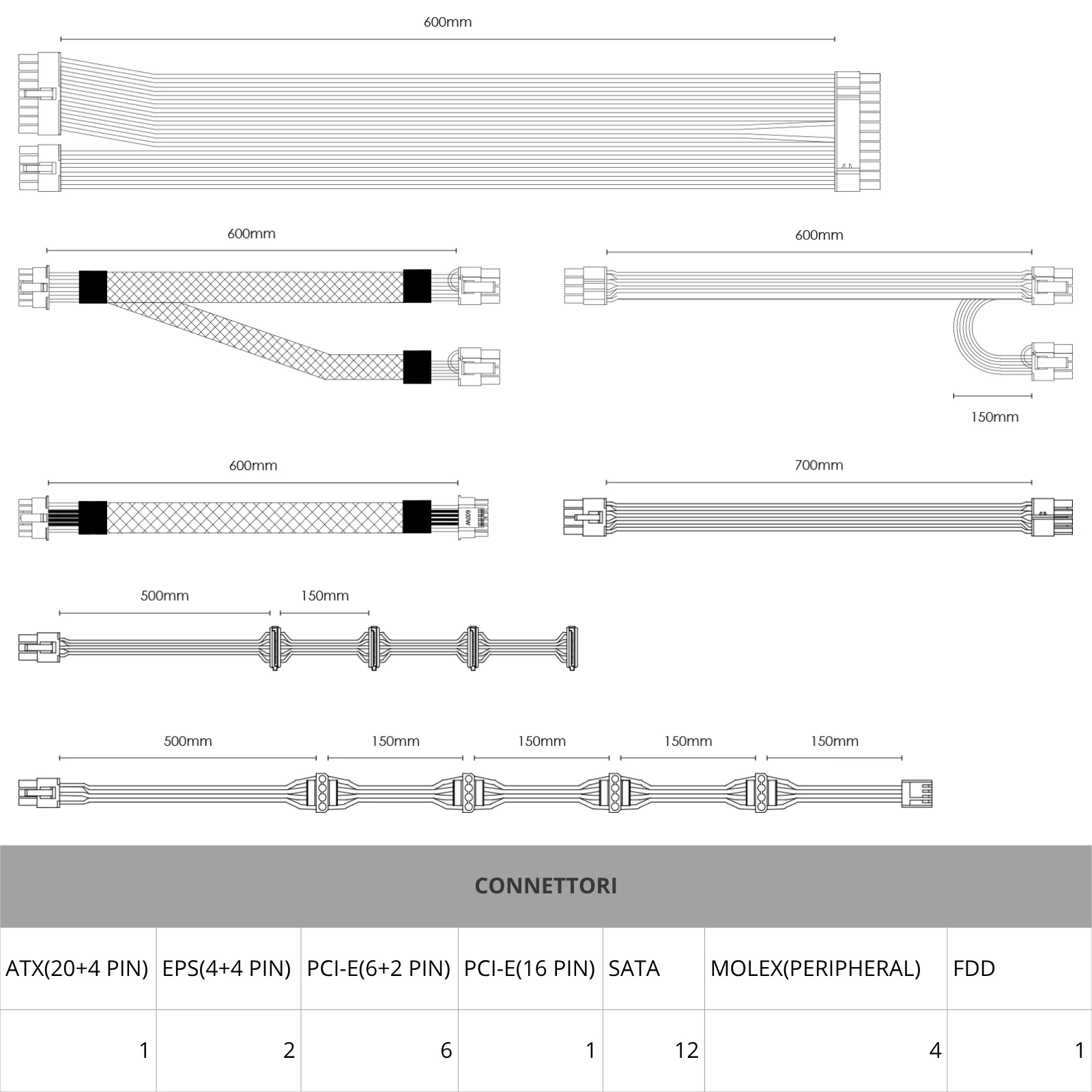 | ATX (20+4 pin) | 1x | Alimentazione scheda madre |