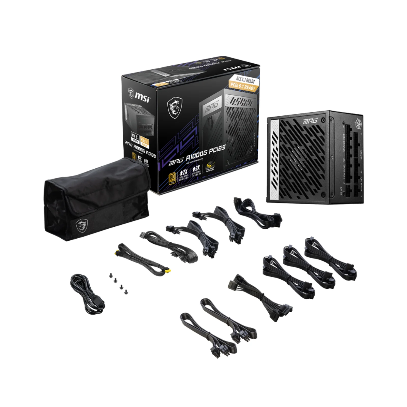 MSI MPG A1000G PCIE5 – Alimentatore 1000W, 80 PLUS Gold, ATX 3.0, PCIe 5.0, Modulare