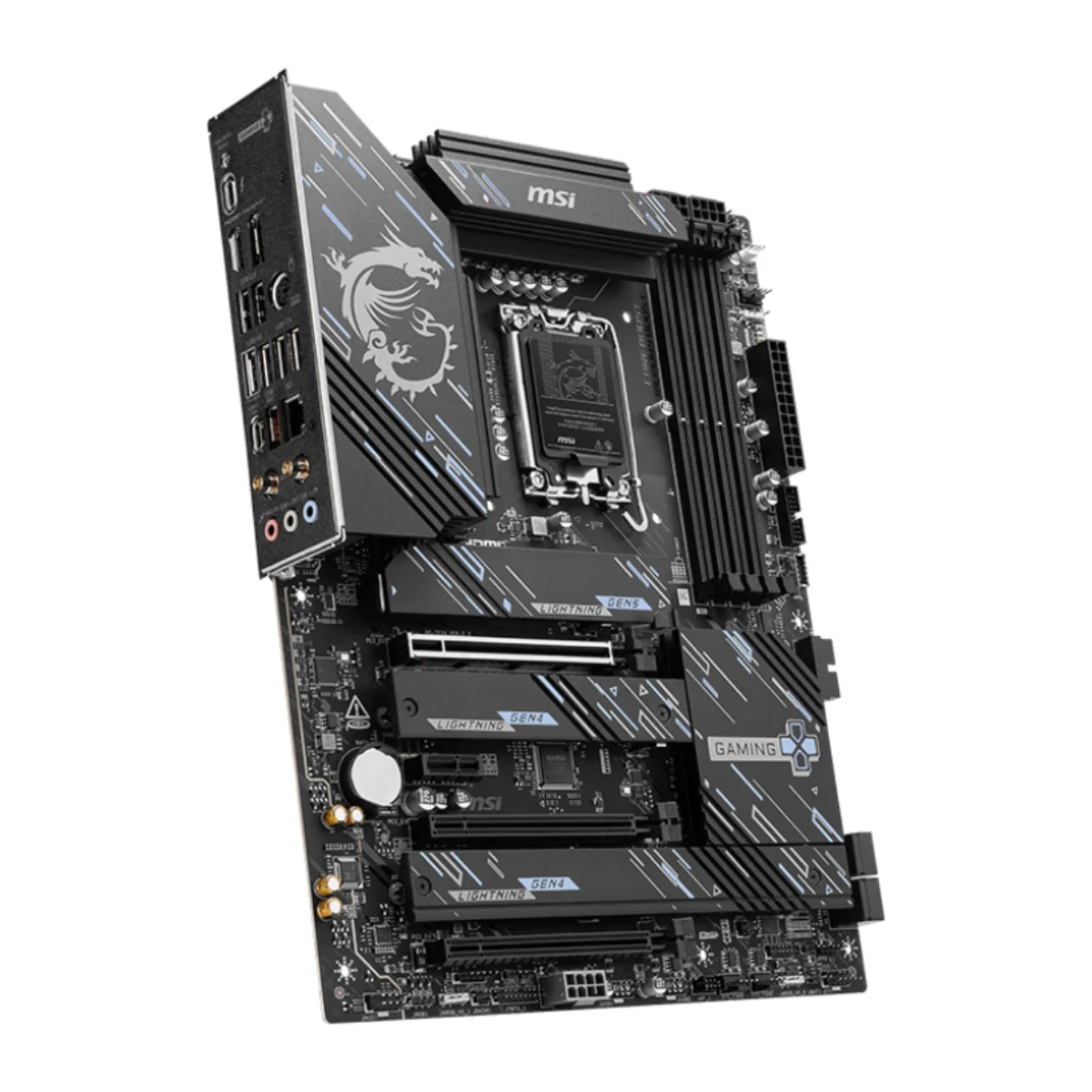 Il reparto connettività è di altissimo livello: PCIe 5.0, slot M.2 Lightning Gen 5 x4, Thunderbolt 4, Intel® Killer™ 5G LAN e Wi-Fi 7 garantiscono trasferimenti ultra-rapidi e connessioni stabili. Le funzioni EZ DIY come EZ M.2 Clip II, EZ PCIe Clip II ed EZ Antenna rendono l’assemblaggio e la manutenzione estremamente semplici.