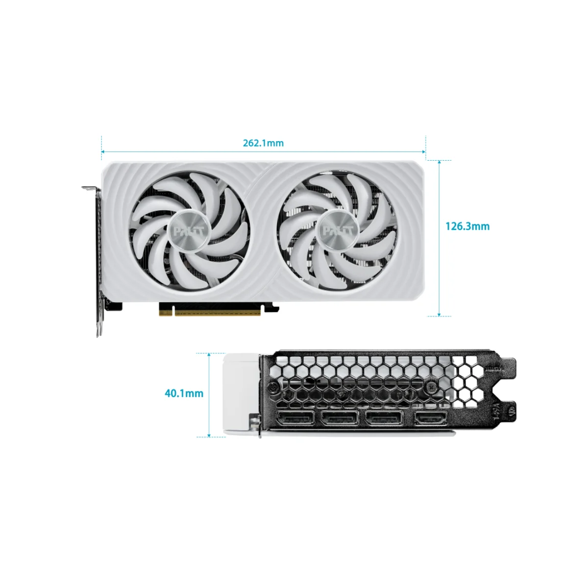 La Palit GeForce RTX™ 5060 Ti White OC 8GB combina eleganza, efficienza e potenza AI in un design compatto e moderno.