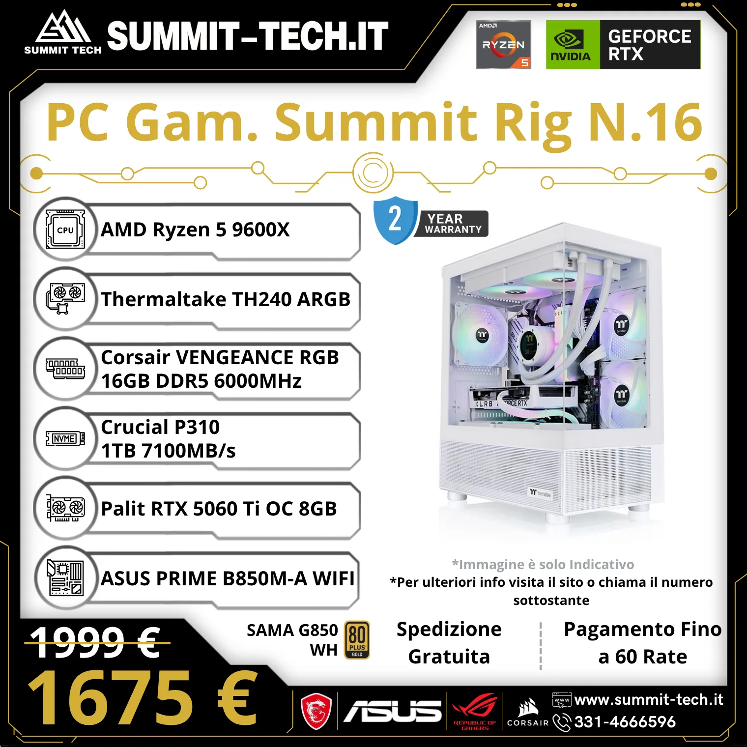 PC Gaming N.16 – Ryzen 5 9600X / RTX 5060 Ti 8G / 16GB DDR5 / 1TB SSD / Wi-Fi 6E / 850W / Win 11 Pro | Summit Rig