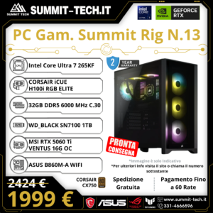 PC Gaming N.13 – Ultra 7 265KF / RTX 5060 Ti 16G / 32GB DDR5 / 1TB SSD / Wi-Fi 6E / 750W / Win 11 Pro | Summit Rig