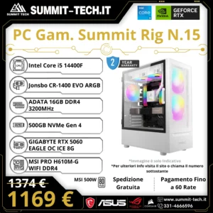 PC Gaming N.15 – i5 14400F / RTX 5060 8G / 16GB DDR4 / 512GB SSD / Wi-Fi 5 / 500W / Win 11 Pro | Summit Rig