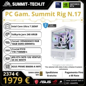 PC Gaming N.17 – Ultra 7 265KF / RTX 5070 12G / 16GB DDR5 / 1TB SSD / Wi-Fi 6E / 850W / Win 11 Pro | Summit Rig