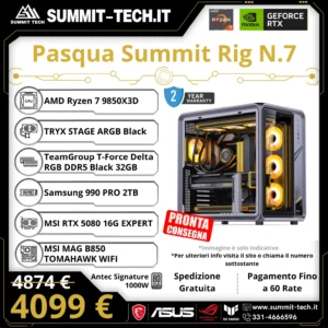 Pasqua PC Gaming N.7 – Ryzen 7 9850X3D / RTX 5080 16G / 32GB DDR5 / 2TB SSD / Wi-Fi 7 / 1000W / Win 11 Pro | Summit Rig