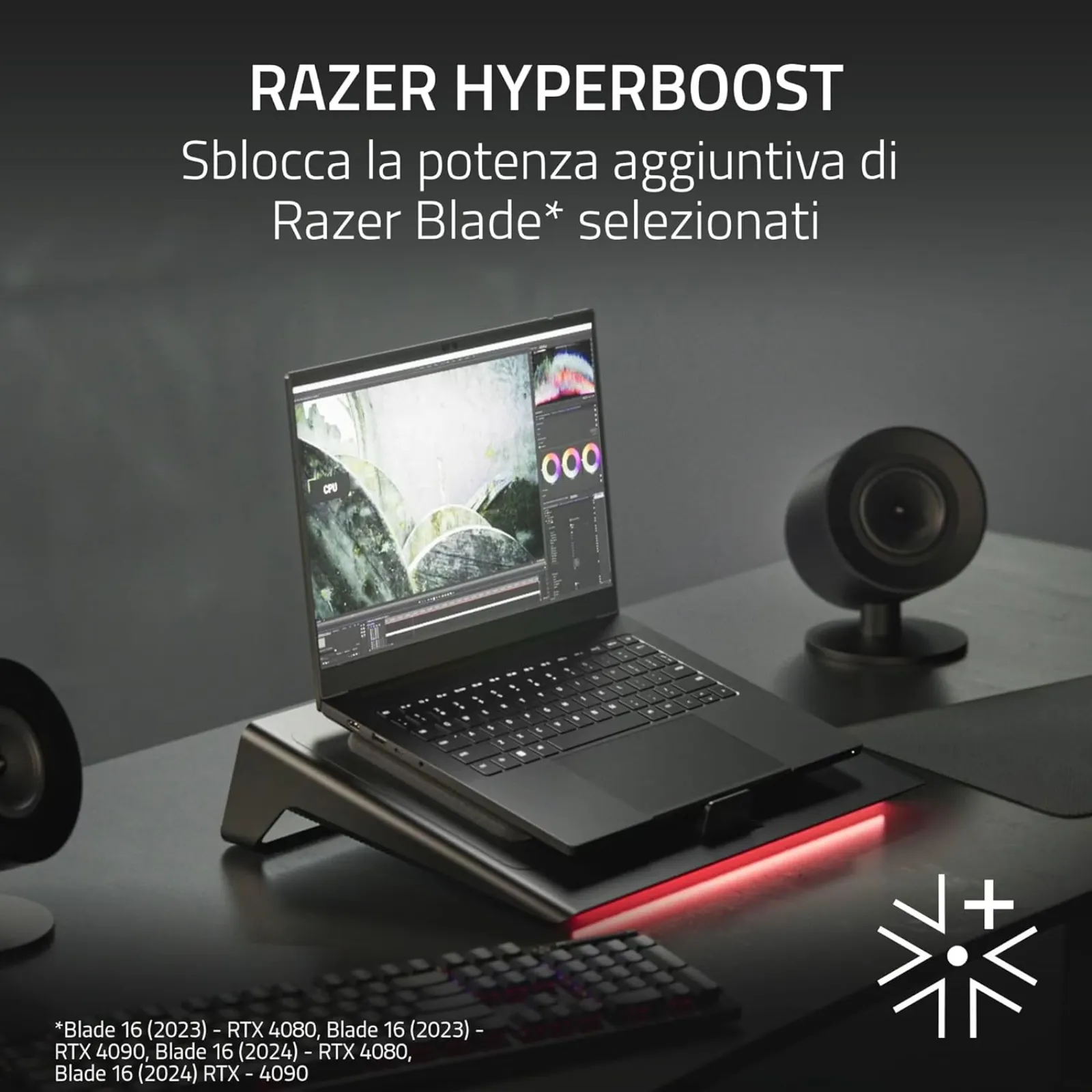Il Razer Laptop Cooling Pad supporta la tecnologia Razer HyperBoost, progettata per alcuni modelli di Razer Blade compatibili.