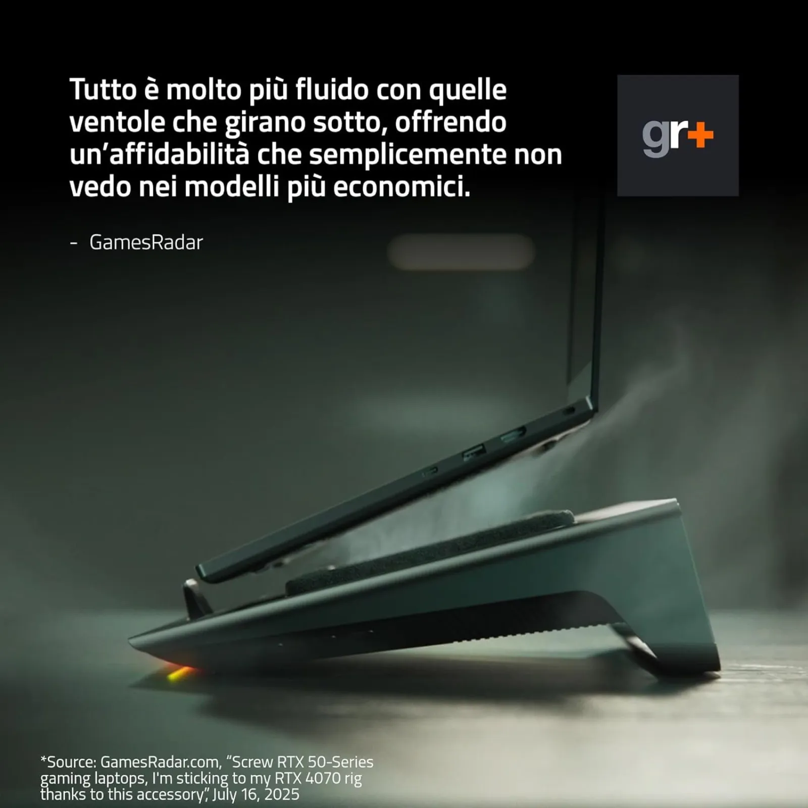 Questa configurazione garantisce una perfetta aderenza tra il laptop e il sistema di raffreddamento, migliorando l’efficienza del flusso d’aria.