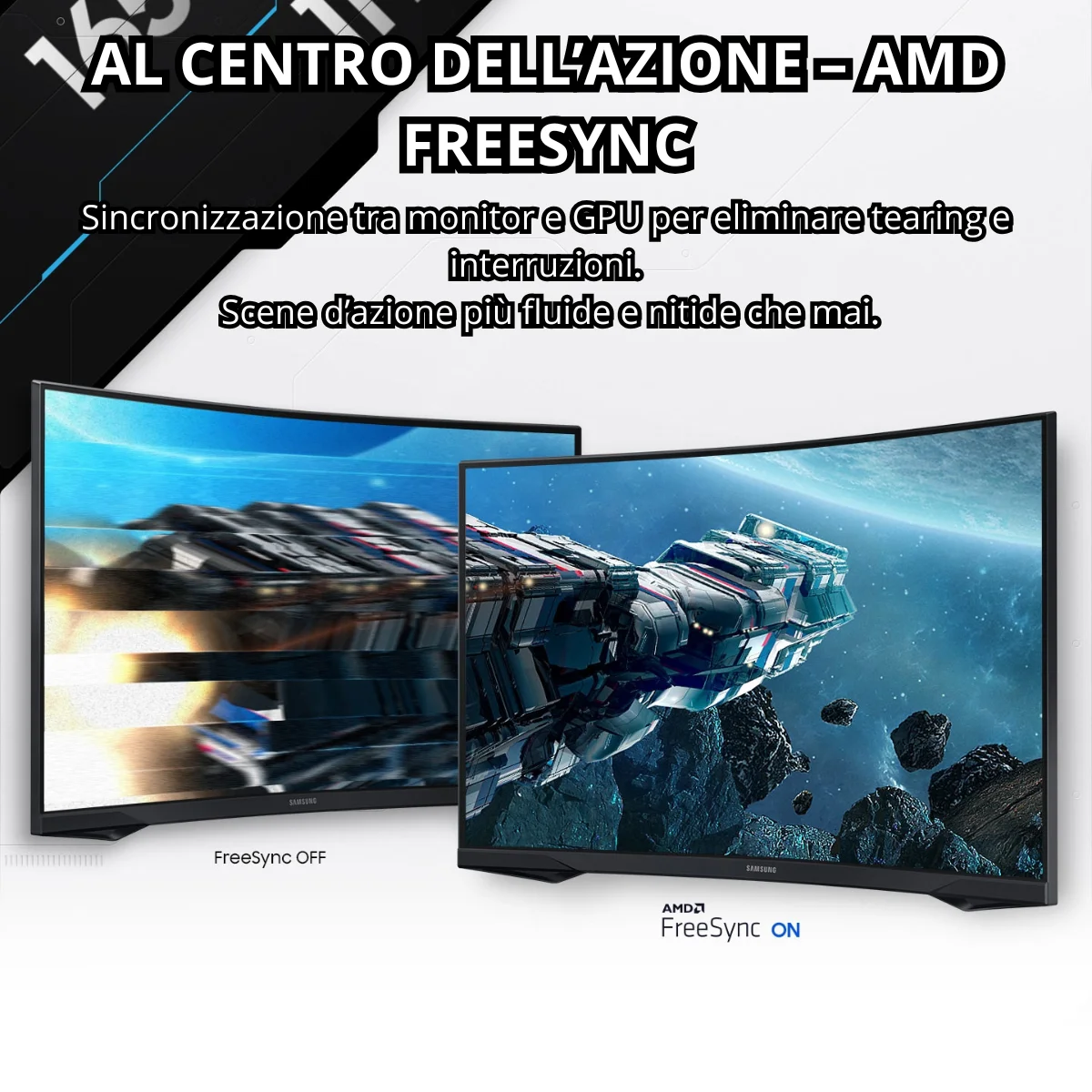 Grazie alla tecnologia AMD FreeSync, monitor e scheda grafica lavorano in perfetta sincronia, eliminando tearing e stuttering, mentre l’HDR10 esalta i colori, i contrasti e le sfumature, rendendo ogni partita ancora più realistica.