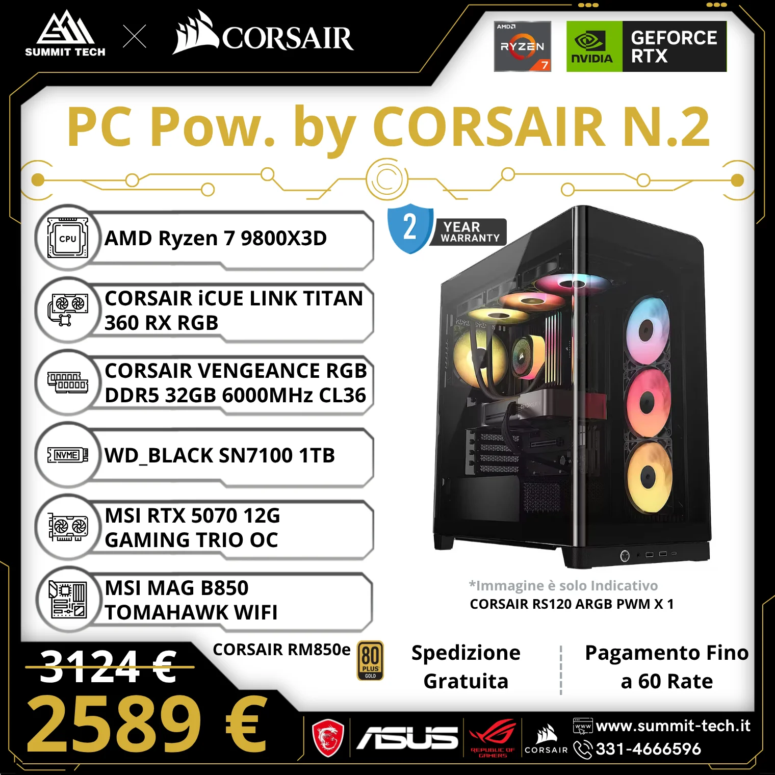 Summit PC N.2 – Ryzen 7 9800X3D / RTX 5070 12G / 32GB DDR5 / 1TB SSD / Wi-Fi 7 / 850W / Win 11 Pro | Powered by CORSAIR