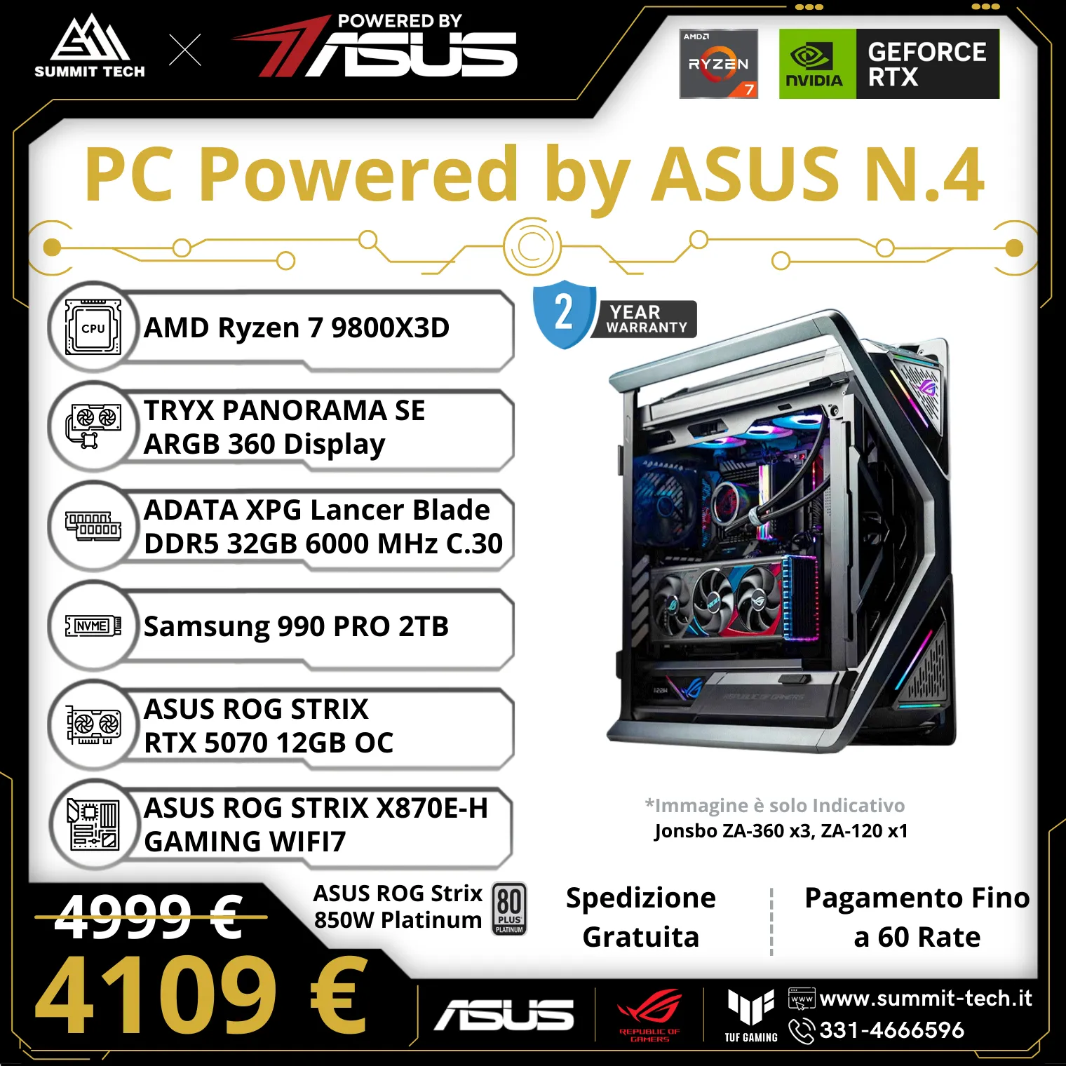 Summit PC N.4 – Ryzen 7 9800X3D / RTX 5070 12G / 32GB DDR5 / 2TB SSD / Wi-Fi 7 / 850W / Win 11 Pro | Powered by ASUS