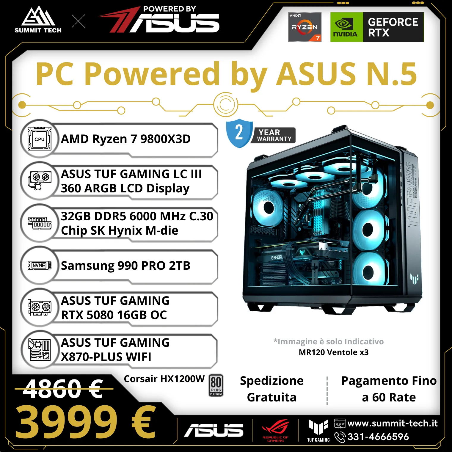 Summit PC N.5 – Ryzen 7 9800X3D / RTX 5080 16G / 32GB DDR5 / 2TB SSD / Wi-Fi 7 / 1200W / Win 11 Pro | Powered by ASUS