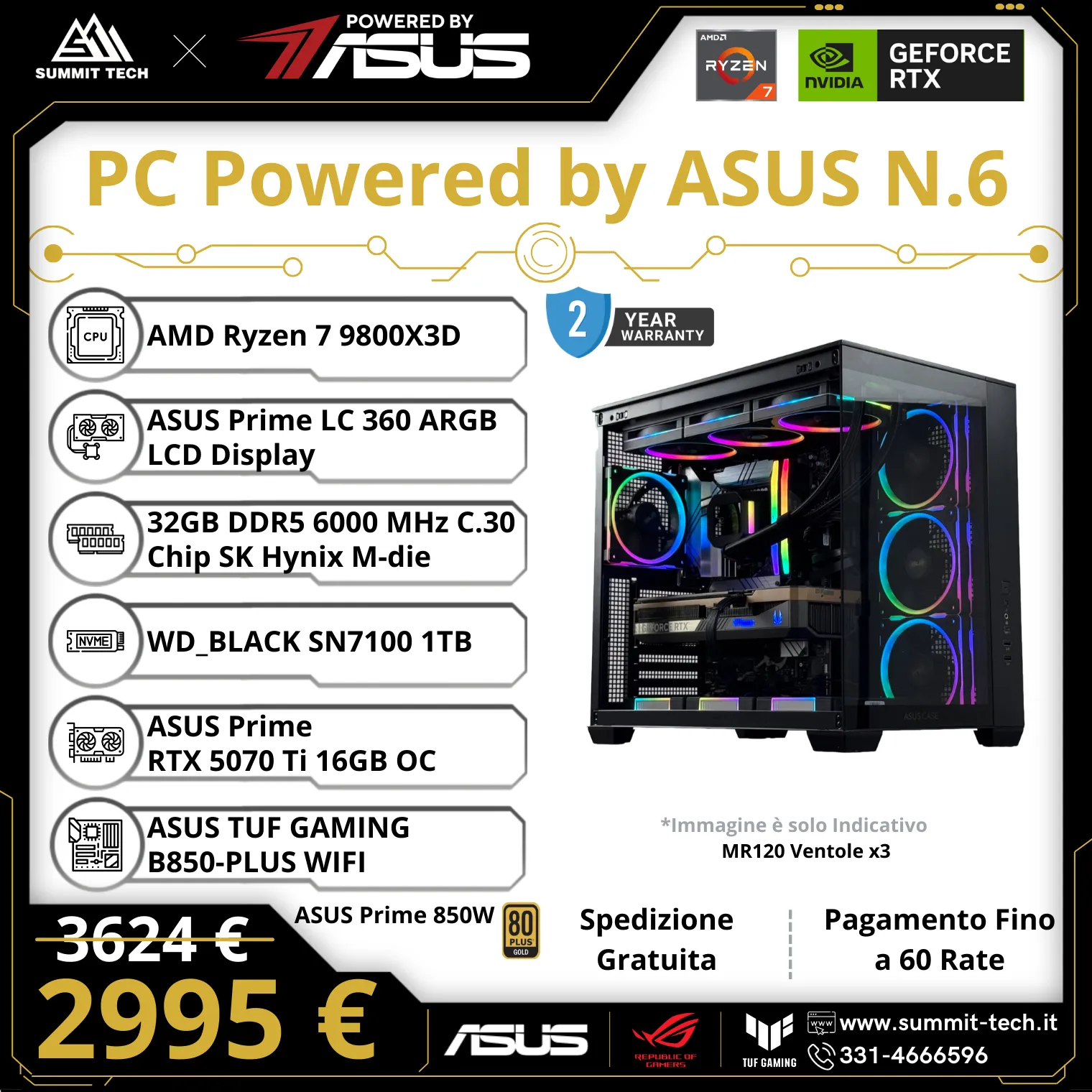 Summit PC N.6 – Ryzen 7 9800X3D / RTX 5070 Ti 16G / 32GB DDR5 / 1TB SSD / Wi-Fi 7 / 850W / Win 11 Pro | Powered by ASUS