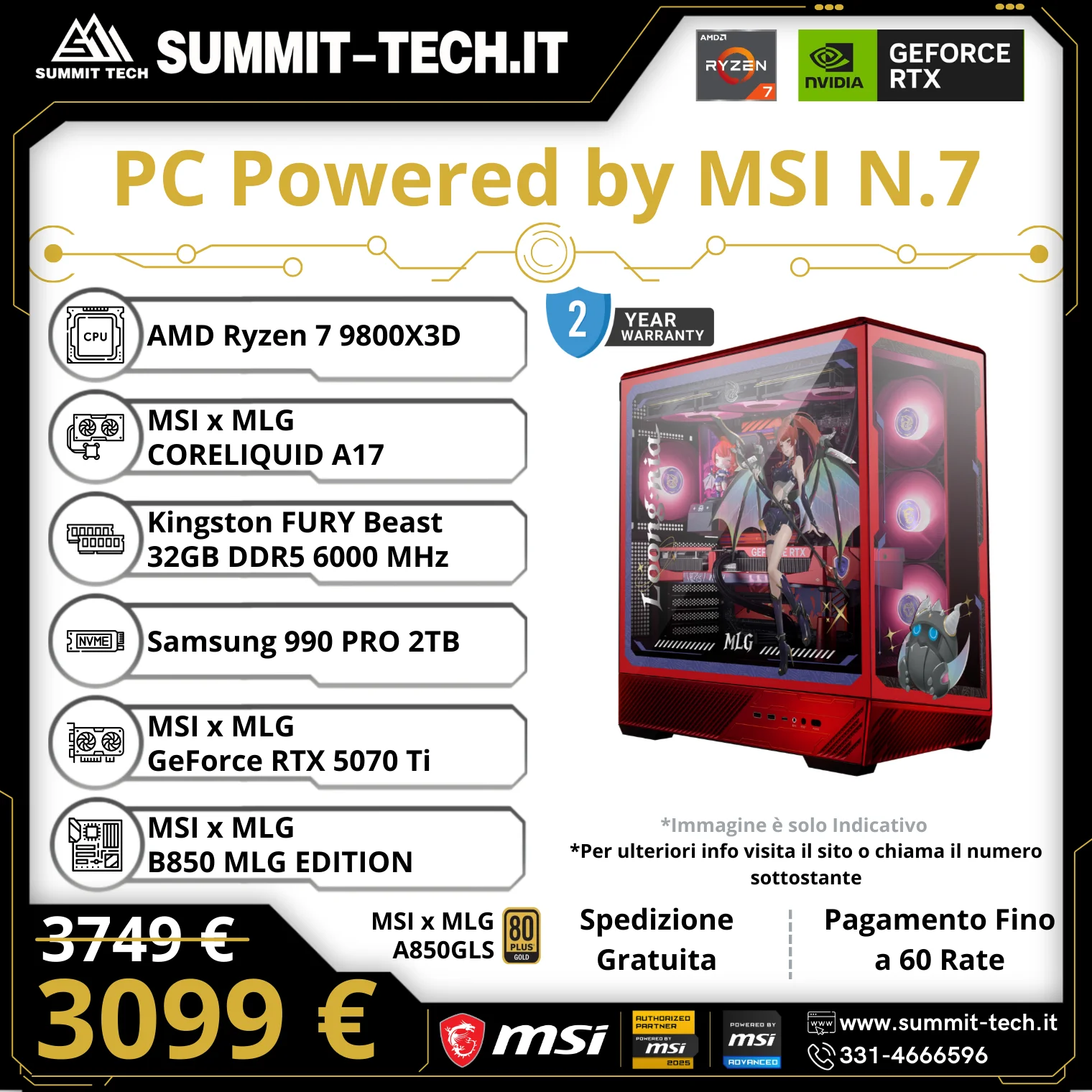 Summit PC N.7 – Ryzen 7 9800X3D / RTX 5070 Ti 16G / 32GB DDR5 / 2TB SSD / Wi-Fi 7 / 850W / Win 11 Pro | Powered by MSI